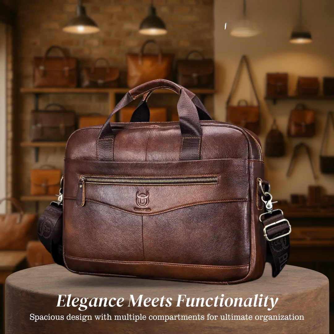 Combining ease of portability with sophisticated style, this briefcase keeps your work items neatly arranged and adapts seamlessly from the office to casual outings with understated elegance.