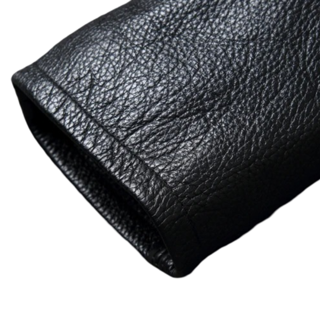This men’s leather motorcycle jacket offers a bold yet refined style. The stand collar design adds a modern edge to its classic silhouette. Perfect for riders and anyone seeking a confident, edgy look.