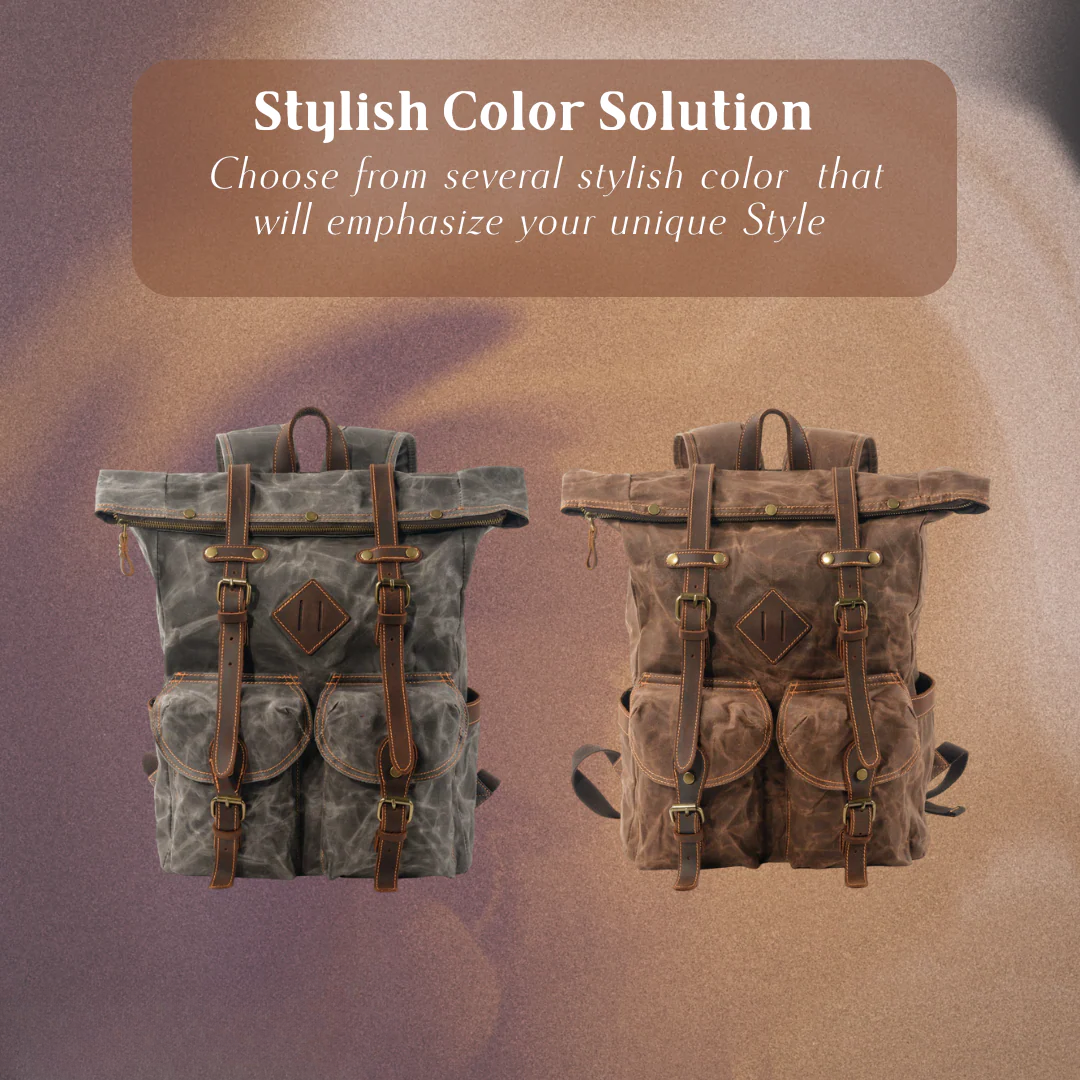 The Nard Rugged Waxed Canvas Backpack blends classic vintage aesthetics with practical durability. Constructed from heavy-duty waxed canvas, this backpack is designed to withstand the demands of daily use while maintaining its stylish appeal.